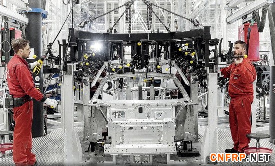 一旦车体框架通过完成区——区域1的后一站——就会被卡车运往内卡苏尔姆(Neckarsulm)工厂的着漆车间,在那里,车体框架会经过阴极浸涂和烘箱的200摄氏度热处理,达到终的强度。“碳纤维复合材料在完成这一步加工之前还不能被安装在车体框架上,因为它们不会随温度变化而膨胀,”约亨 瓦格解释说。“我们会在这些框架被运回来后再加装碳质部件。这些工作会在区域2中完成。”