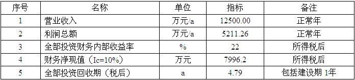 主要财务效益预测指标一览表