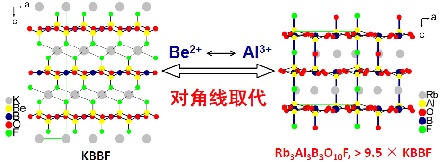 近日,中科院福建物构所罗军华课题组基于元素周期表的对角线规则,利用Al3+取代有毒的Be2+,设计合成了一种新型无铍深紫外NLO材料Rb3Al3B3O10F(RABF)。该材料不仅保留了良好的光学性能,且其层间作用力也提高了约一个数量级。