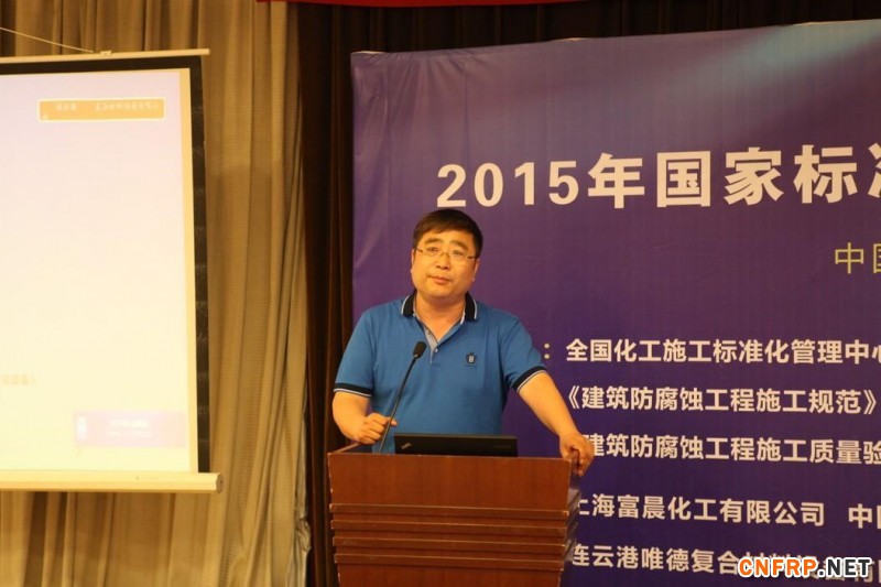 高级工程师李国树对“标准《纤维增强塑料设备和管道工程技术规范》之一:纤维增强塑料设备(FRP)的设计与计算”做了详细讲解,高级工程师王磊也对“标准《纤维增强塑料设备和管道工程技术规范》之二:纤维增强塑料管道(FRP)的设计与计算”进行了详尽的讲述,使与会者耳目一新,明确了《规范》在生产应用中的使用方法。连云港唯德复合材料设备有限公司的郭习奎总经理介绍了“工业4.0版FRP连续缠绕制管生产线”在今后制管行业的作用与优势。