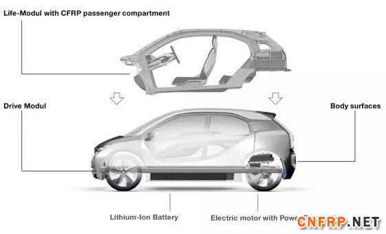 碳纤维复合材料是指,由碳纤维与树脂、金属、陶瓷等基体复合制成的结构材料。其中,汽车行业广泛应用的碳纤维环氧树脂复合材料,具有比重小、刚性好、强度高的特性,抗拉强度据说可达到普通钢材的七至九倍。但是,使用传统工艺生产汽车用的碳纤维复合材料,不仅工艺复杂,而且费时费能,难以向量产车普及,目前只有宝马实现自产自足的CFRP批量供应。