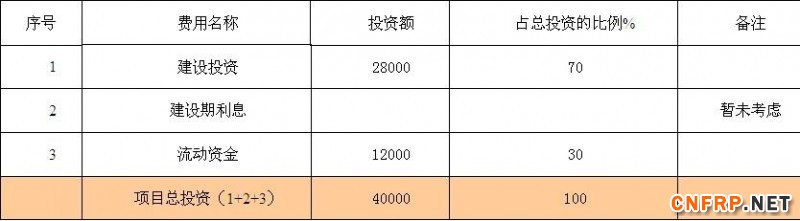 项目总投资40000万元币,其中建设投资28000万元,未考虑建设期利息。