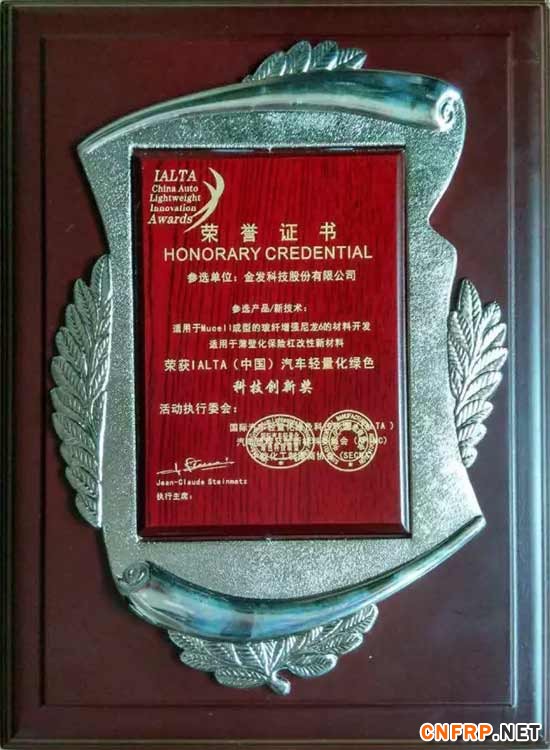金发科技股份有限公司提出的“适用于Mucell成型的玻纤增强尼龙6的材料开发”产品技术获IALTA()汽车轻量化绿色科技创新奖,这是金发科技在汽车轻量化上迈进的又一个重要里程碑。