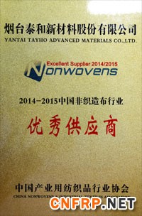 会上同时发布“2014/2015非织造布行业10强企业及优秀供应商”,泰和新材获得“2014/2015非织造布行业优秀供应商”。