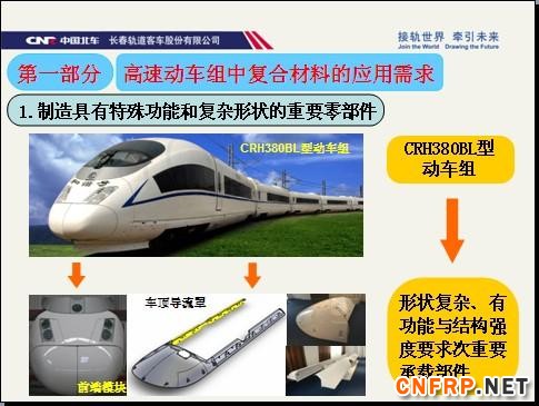 3、复合材料作为轻量化材料应用,如在国产动车组上制造具有一定强度、刚度要求的车辆轻量化部件;