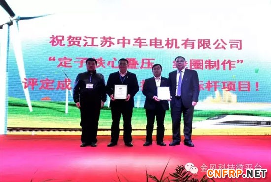金风科技副总裁王进、总裁助理刘万平为江苏中车电机有限公司授牌