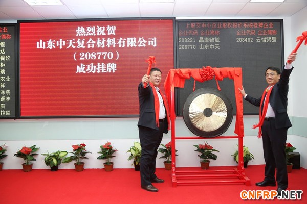 经国际经济技术合作促进会中小企业服务中心辅导,由北京久秉投资管理有限公司推荐的山东中天复合材料有限公司 成功登陆上海股权托管交易中心中小企业股权报价系统。