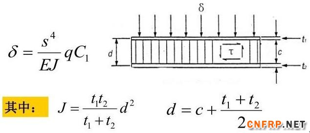 承受均布外载荷的蜂窝夹层结构复合材料变形量计算公式: