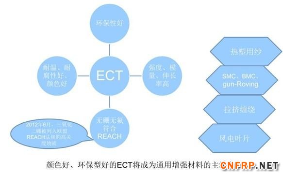玻纤复合材料的未来:热塑性复合材料仍将呈持续增长趋势,但对增强材料的需求将更加多样化;热固性复合材料将向高效、环保方面转型升级;市政工程用复合材料有可能再次得到发展;环保用复合材料可能成为新的增长点;超高强玻纤可能替代碳纤维成为新能源车用增强材料。