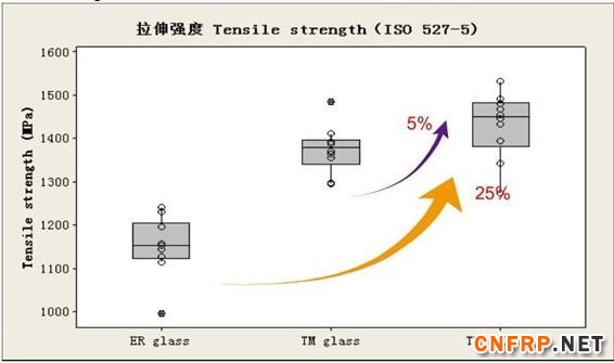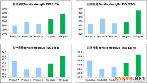 3 ). TM + + glass 的性能优势 /Advantages of TM + glassfiber拉伸性能对比分析/ Tensile properties comparison