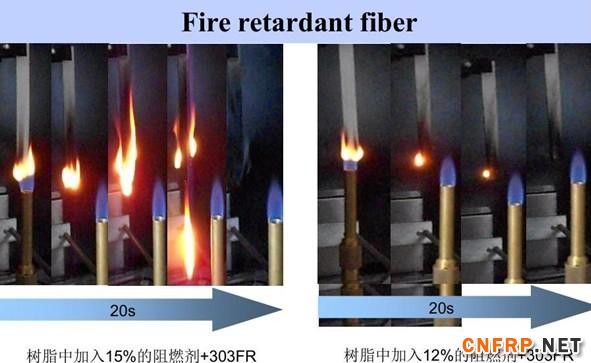 阻燃纤维增强PBT的阻燃性对比: