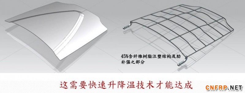 快速升降温技术,在引擎盖、门板、行李箱、保险杆、座椅、内饰件、底盘、车身结构件之热塑复材轻量化应用上,具有非常灵活强大之技术应用优势。
