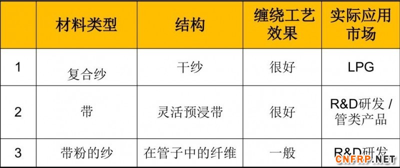 与热固性材料相比不足:缠绕工艺速度大约损失20%。