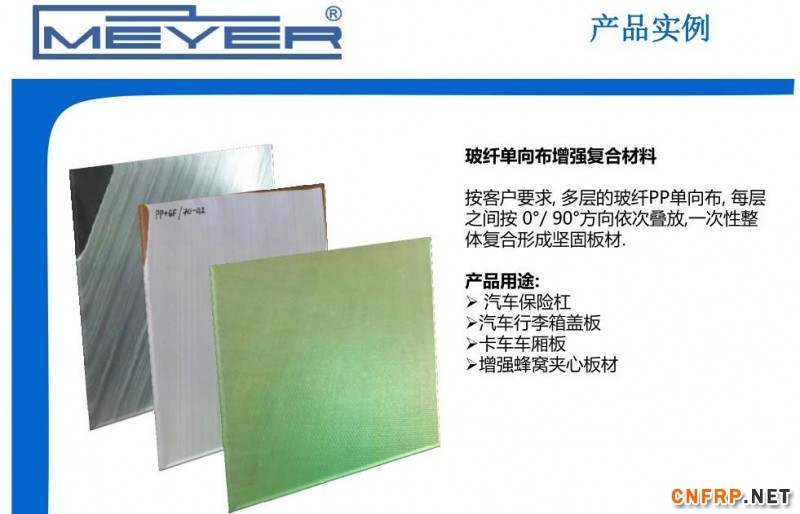 在2015年玻璃纤维/复合材料行业年会上,德国迈亚公司亚太区中方代理经理储鸣先生,介绍了迈亚公司近年来在热塑性复合材料连续板材成型工艺加工方面积累的一些经验,以下为详细内容。