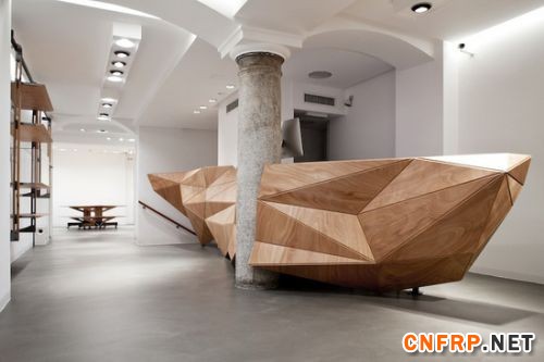 。这种材料“skin”将传统建筑资源(如木头)坚硬的质地与纺织布料的灵活性相结合,为建筑与室内设计提供了更为复杂与非常规的结构可能。