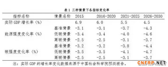 本文在其他研究机构的前期成果基础上,预测“十三五”期间及到 2030 年前能源消费、能源消耗强度和碳排放量。进而从节能减排和降低能源消耗强度的角度,通过情景分析来探讨 2030 年能源消费总量和碳排放量的可能情景。