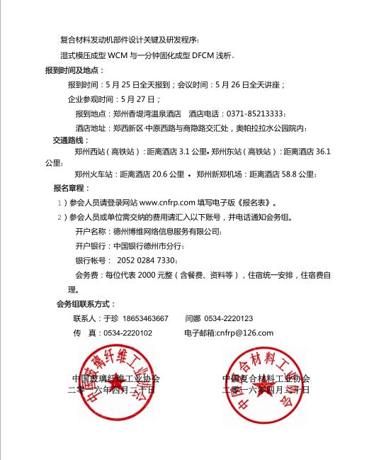 5月25日:全天报到,晚上19:00--21:00召开“汽车厂家与复合材料厂家交流对接会‘’