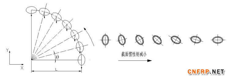 图11 椭圆截面结构弯矩和截面惯性矩变化示意图