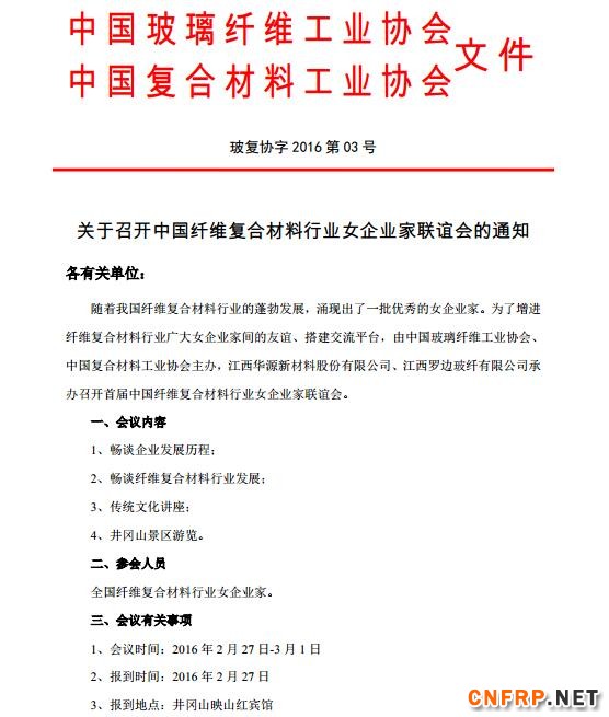 【江西】关于召开纤维复合材料行业女企业家联谊会的通知