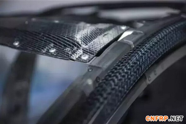 车顶纵梁使用CFRP加固(沿左右连接车顶前端与车顶梁内侧的加固件)