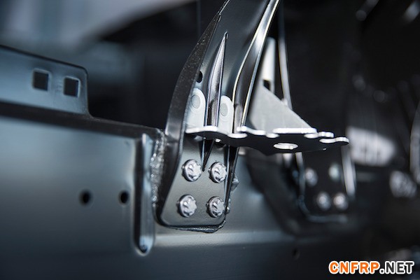 在其他部位,前轮罩内的支架也通过与铝合金制前侧梁接合的形式,使用螺丝固定CFRP板进行了加固。