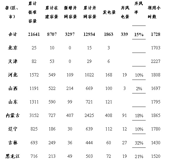 3、累计核准容量、累计在建容量、弃风电量、弃风率来源于水电水利规划设计总院。