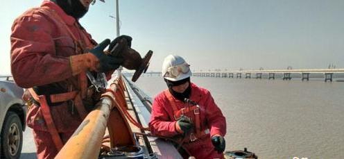 该公司安装的供水玻璃钢管道管经为300mm,进岛供水管道附设在黄海大桥西侧,全长12、6公里。23日下午在寒潮来临之前采取了紧急排空措施,将上端进桥、岛的供水阀门关紧断水,然后桥4公里处和未端将管道凿洞割开把管内存水排干,免遭了寒潮的袭击。