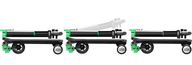 ZAR E-scooter 是一辆电动滑板车,其主要的特点就是便携。行走过程中它并未与目前市面上的一些电动滑板车有什么不同,不过看看下边这张 ZAR 电动滑板车的收纳 GIF 图片,它可以很方便得完成折叠收纳,并把大小控制在接近一台打开后的 MacBook 三围体积下。