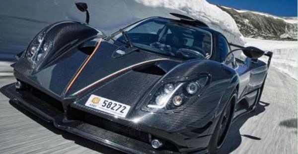 图为Pagani Zonda LM,限量1台,7.3升 V12 AMG,全碳纤维,700马力,后轮宽度335,英镑售价350万。