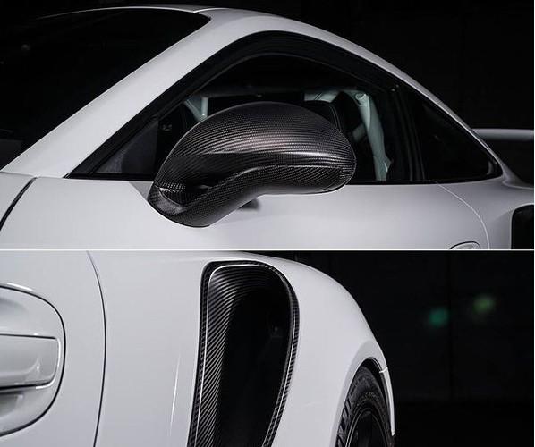 例如911 Carrera就提供碳纤维材质的前、后下扰流板、前保险杠通风口格栅和后视镜壳,而911 Turbo是拥有齐全的Carbon Sport Package套件,除了上述部件更换成碳纤维材质外,前翼子板散热孔、前保险杠雾灯下方的aerowings和后挡风玻璃旁的百叶窗式散热孔等等,也一并更换上碳纤维材质。