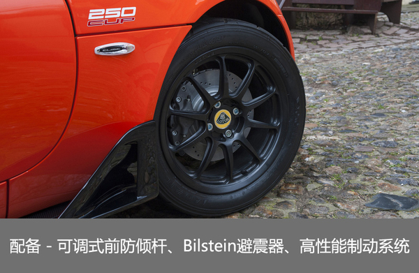 操控特性是路特斯旗下车款的主要优势之一,全新Elise Cup 250跑车在车架设计方面做出了全面强化。新车配备有可调节阻尼的前侧防倾杆,悬挂系统也选用了Bilstein品牌所出品的赛车避震器。与此同时,新车所采用的螺旋弹簧也经过强化处理,具有更强的侧向支撑性,而高性能制动系统则使得这款整备质量仅为920公斤的车辆能够在短的时间内完成百公里刹停,并且有效缩短制动距离。