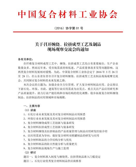 【东营】关于召开缠绕、拉挤成型工艺及制品现场观摩交流会的通知