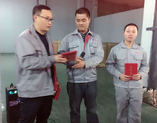 此次质量表彰会对2月份的优秀班组和优秀员工进行表彰,通过综合考核评选,三班以115.44的考评分获优秀班组,余仕萍,唐东旭,曾宝川,谷仕英、李顺云等五位同事获得2月的优秀员工!周总在现场为优秀班组和优秀员工颁发证书和奖励。此次表彰不仅是对我们员工付出辛劳和成绩给予了充分肯定,同时也向新员工展示了我司的企业文化。周总指出,今后的生产工作,我们将采取一对一的帮扶方式,老员工带领新同事,更快的学习生产技能和安全注意事项,尽快的融入我们长远大家庭。