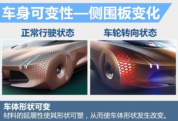 理念和车身材料将通过“4D打印技术”实现。与传统制造工艺和3D打印技术不同的是,4D打印出来的零件将直接兼具功能性,同时可以对被打印物体进行“编程”,使其未来发生形状的改变,这也就表示未来汽车将可变形。
