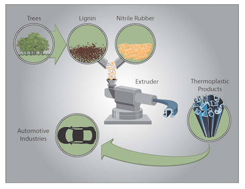 这项技术可以利用能源提炼厂、纸浆和造纸厂产生的富含木质素的副产品。随着天然气和油价下跌,可再生燃料无法与矿物燃料相竞争,因此生物炼油厂正在开发其他具备经济可行性的产品。根据橡树岭实验室,在纤维素中,半纤维素和木质素是植物的主要结构成分,而木质素在商业应用上是未被充分利用的一种成分。
