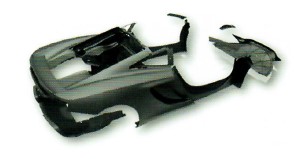 下一步用一个特别的夹子快速将胚材传递并铺放进模具内。经过合模,使用一种经模拟试验证实的、独特的注射工艺,将熔化的有机片材(聚丙烯+40%玻纤)进行二次成型,终部件即是净形部件。
