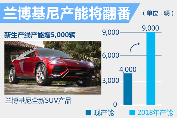 目前兰博基尼的圣亚加塔?波隆尼工厂拥有两条生产线和4,000辆的年产能,分别用以投产Huracan和Aventador两款超级跑车。根据兰博基尼的产能规划,在2017年秋季第三条车型生产线落成后,款SUV车型Urus的产能将超过上述两款超级跑车的产量,三款车型总计产能将达到9,000辆。届时兰博基尼的产量将实现翻番,产品销量以及营业收入也将继续攀升。