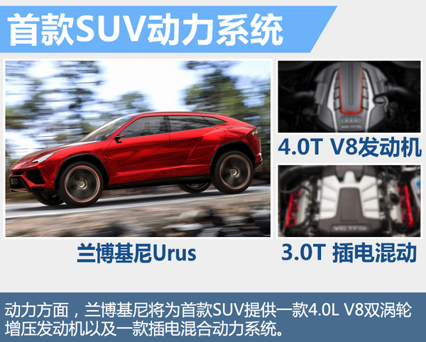 动力方面,兰博基尼已确认Urus SUV将搭载4.0升 V8双涡轮增压发动机,而技术提供则有望来自奥迪。兰博基尼和奥迪同属于大众集团,且兰博基尼之前被奥迪收购,因此两者间部分技术以及零件的共通化会带来更少的研发成本和更短的研发时间。