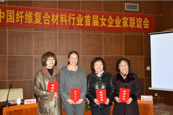 行业女将们在会上畅所欲言。回创业经历,峥嵘岁月稠;展望未来发展,雄心壮志强。张福祥副会长兼秘书长为联谊会做了总结。玻璃纤维和复合材料两个行业具有共性,行业发展要打通产业链,企业发展的思路要提高到战略层面。没有苦中苦,不能成大业。我们要加快发展速度,奋起直追,通过我们全体纤维复合材料人的努力,十年内打造五个产值20亿元以上的复合材料大厂。后他代表协会为工业和信息化部产业政策司原处长袁克兰女士、连云港中复连众复合材料集团有限公司任桂芳董事长、陕西华特玻纤材料集团公司原董事长贾韵梅女士、数量经济监理学会原副会长于小兰女士颁发了“纤维复合材料行业巾帼英杰”奖,借此肯定她们数十年来为行业做出的杰出贡献和卓越的影响力,为后起之秀们做出了榜样作用。