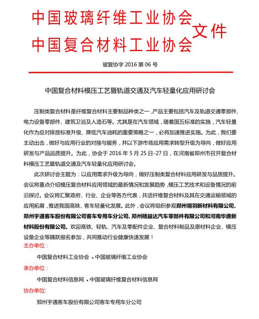 【郑州】复合材料模压工艺暨轨道交通及汽车轻量化应用研讨会预通知