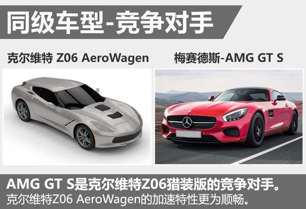 在同级别车款的较量中,梅赛德斯-AMG GT S则具有充足的实力挑战雪佛兰克尔维特Z06 AeroWagen。而在两车的动力较量中,雪佛兰克尔维特Z06 AeroWagen将凭借排量更大的发动机,从而在机械增压技术的应用后,进而在动力储备方面赶超梅赛德斯-AMG GT S。而机械增压的进气形式也可比拟大排量发动机的出力特性,终在动力顺畅性方面优于梅赛德斯-AMG GT S。