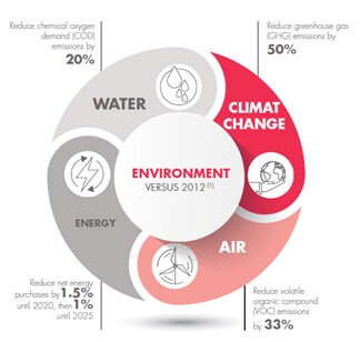 阿科玛也承诺将持续减少其生产活动的环境足迹,并在2025年前达成以下四项目标: