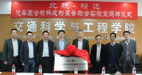 4月7日,在复合材料学会创新助力下,由北京航空航天大学与宁波精达成形装备股份有限公司联合成立的“汽车复合材料成形装备联合实验室”在北京航空航天大学举行了挂牌仪式。复合材料学会、北京航空航天大学交通学院、宁波市江北区科技局、宁波精达成形装备有限公司有关负责人,以及北京航空航天大学交通学院有关师生出席仪式。