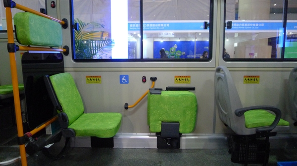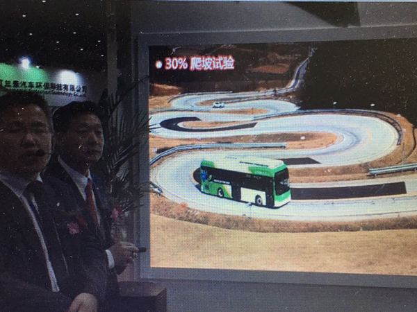 在换电演示中,通过专用的顶置换电用时45秒换电结束。同时该车选用低地板结构(离地小距离150mm),使得乘客上下车更为方便,在人性化设计上具有残疾人上车辅助功能。