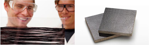 图10 Innventia和Swerea SICOMP合作开发的木质素基碳纤维及1.8 g编织碳纤维复合材料层压板