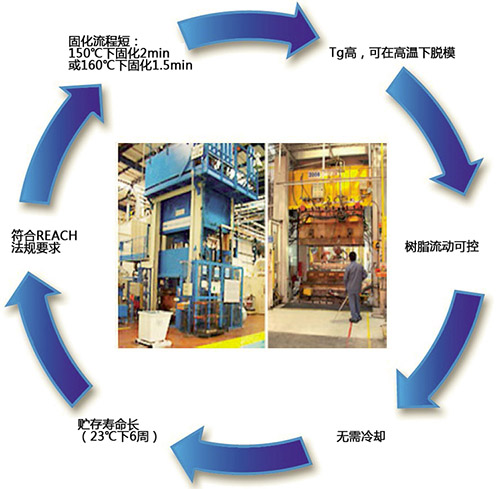 2015年底,Gurit UK(英国固瑞特)也推出了“瞬间固化”环氧树脂,但不同于其他针对RTM或湿压缩成型工艺开发的树脂,其树脂配方主要用于成套预浸料和热进/热出冲压成型(hot-in/hot out press molding)工艺。虽然该工艺固化周期需要 5min,但报道称其制造的部件表面可达A级,无需模具后处理。