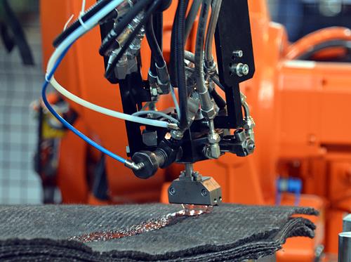 而陶氏推出的用于LCM工艺的VORAFORCE树脂,可以直接将树脂均匀地涂敷在干的纤维预制件上,并通过压强使树脂织物在厚度方向上均匀浸润,其还宣称已经与德国KraussMaffei公司和意大利Cannon SpA公司合作开发出仅需要15~20 s涂敷树脂及30s固化,总制造时间小于60s的复合材料制备工艺。但是该工艺由于很难提供复杂零件的成型模具,对于LCM成型的部件则仅适合相对平坦或轻微轮廓部件的制造,相比之下,RTM是该树脂好的选择。