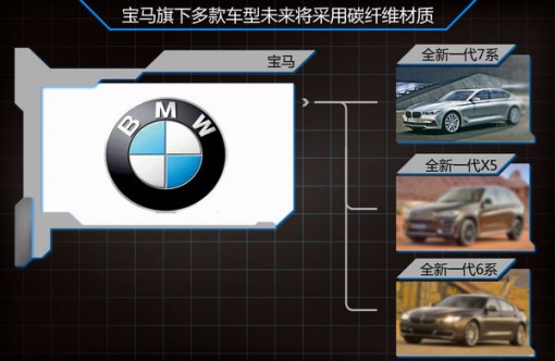 与英菲尼迪形成鲜明对比的企业,正是同属豪华阵营的宝马。今年宝马发布了旗下款电动汽车-i3,该车应用大量碳纤维复合材料,使得i3整备质量仅为1195公斤,同时也间接增加了整车的续航里程,令i3成为轻的电动车。宝马集团席财务官弗里德里希•艾希纳(Friedrich Eichiner)曾表示:”在碳纤维方面的投入不仅仅是针对单辆汽车,而是针对未来宝马的整个产品系列及业务。”此外,从新一代宝马7系开始,宝马的主要车型6系、X5等都将应用碳纤维材料。