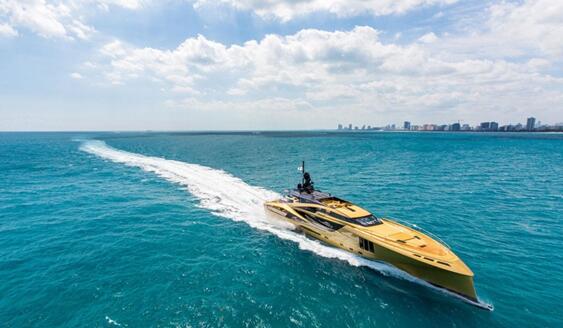这艘游艇拥有典雅如雕塑般的外型轮廓,金黄色珠光闪亮的喷漆,在金光灿灿之间黑色雷达都能牢牢抓住众人视线。即使处于静止状态,也时刻光芒四射。这位“闪亮女神”无论出现在哪里,都是人们关注的焦点。但有一个人却表现得非常淡定,他就是Timur Mohamed——Palmer Johnson船厂的老板,他似乎早已习惯游艇爱好者们对自家出厂精品的欢呼喝彩。
