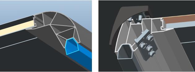 代替铝型材、内饰件的复合材料:比如,通过结构设计,采用复合材料代替铝型材,作为铝风道部分结构。通过复合材料成型技术制作成型顶等内饰件。